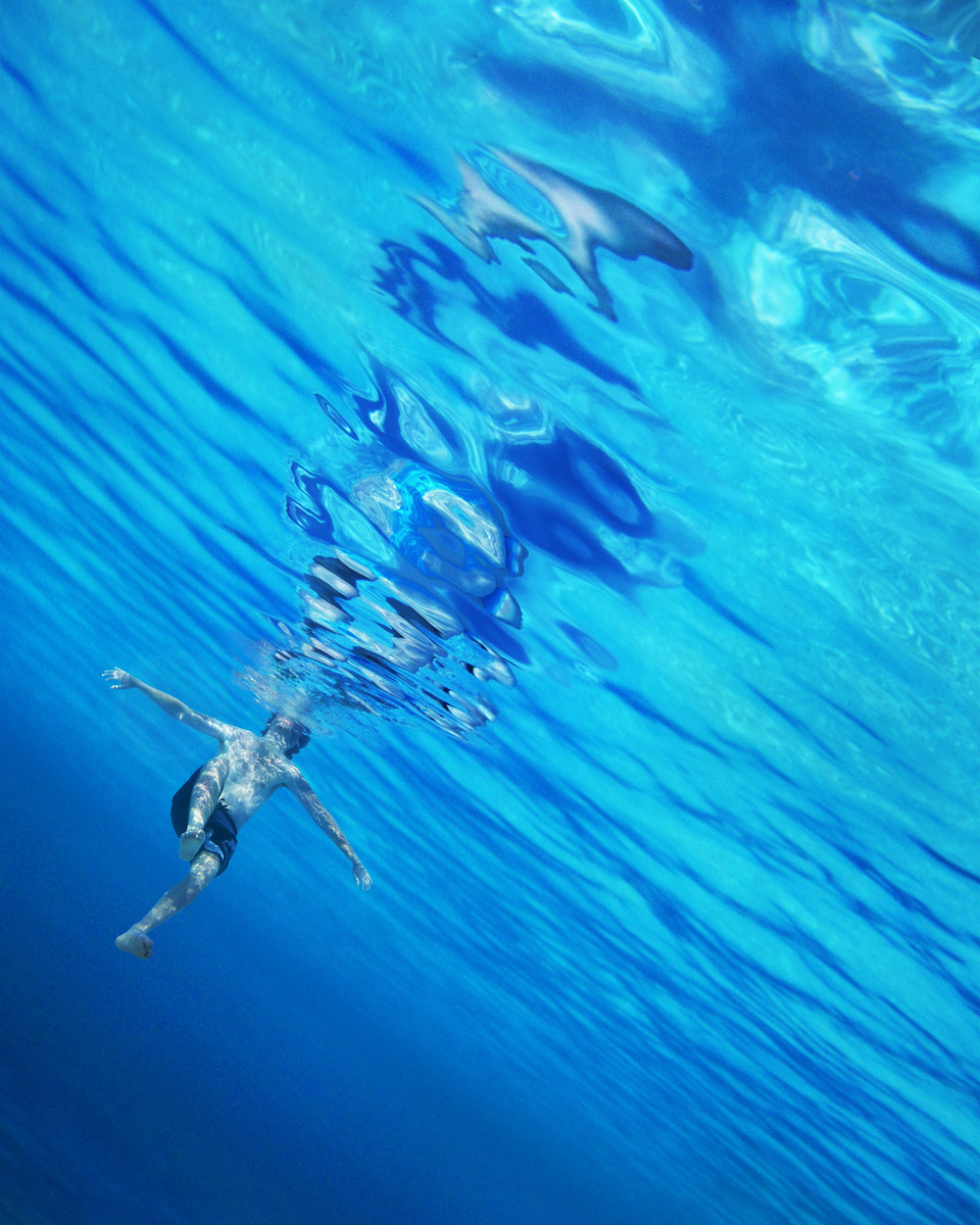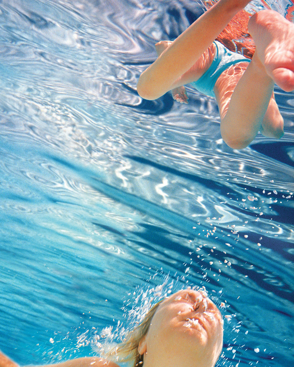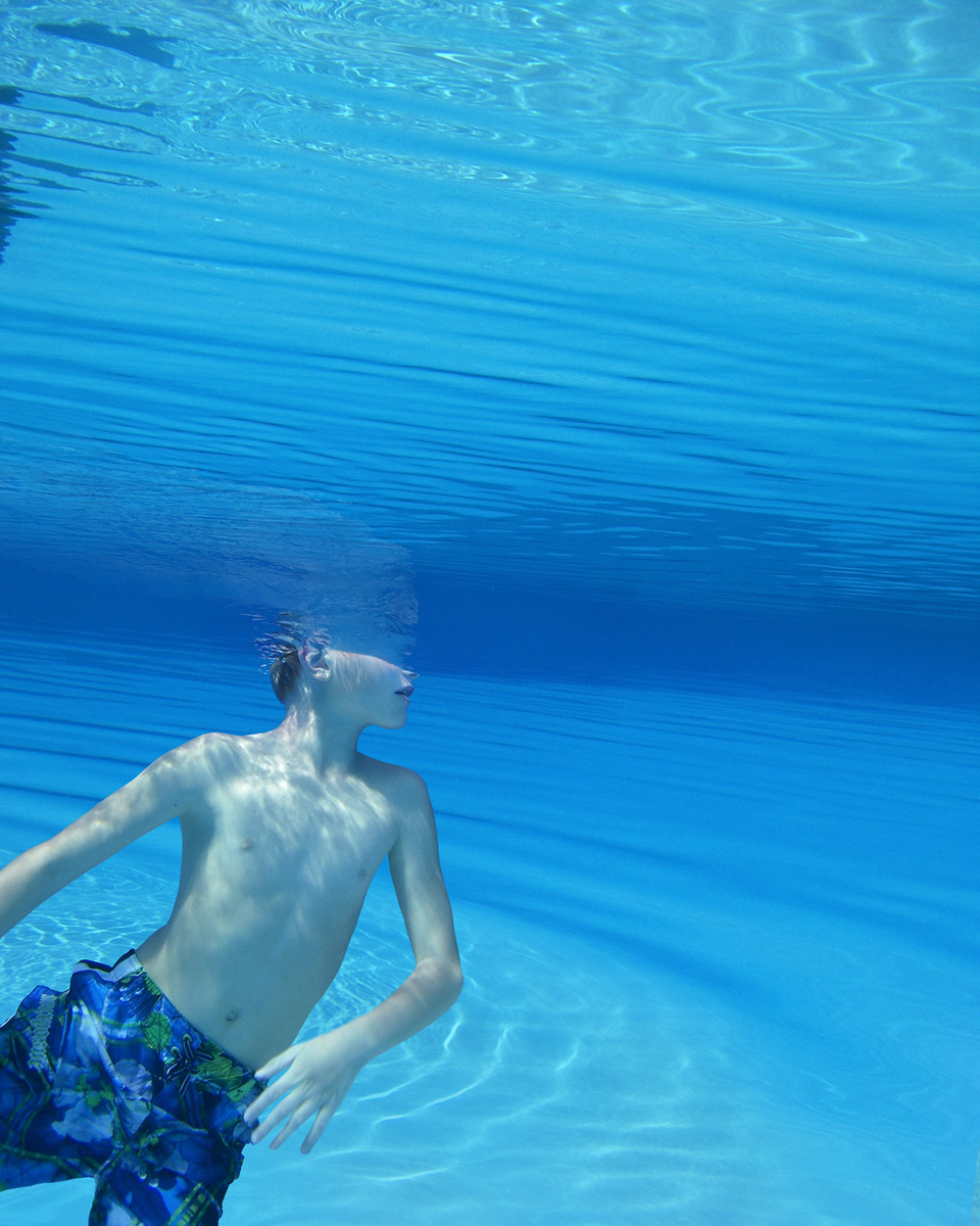 When Kevin left the camera to me in his will, it seemed changed. Sixty surfers paddled out and scattered his ashes outside the break at San Onofre. In the years since, I’ve taken the camera into dozens of resort mega-pools­—Hawaii, the Caribbean, southern Mexico, Fiji, San Diego, Florida, Las Vegas. I’ve photographed people floating, drifting, suspended between one world and the other.